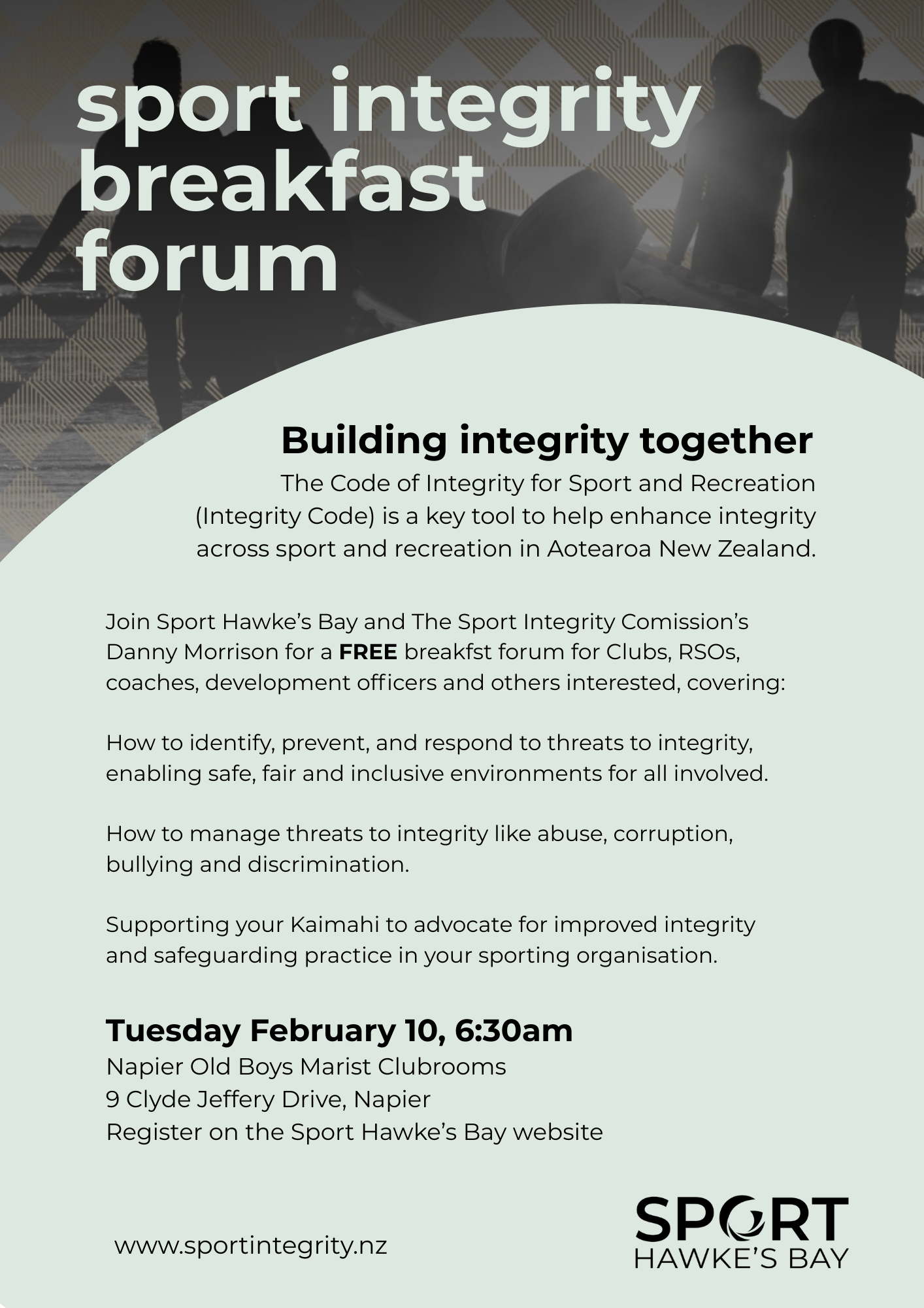 The Code of Integrity for Sport and Recreation (Integrity Code) is a key tool to help enhance integrity across sport and recreation in Aotearoa New Zealand.